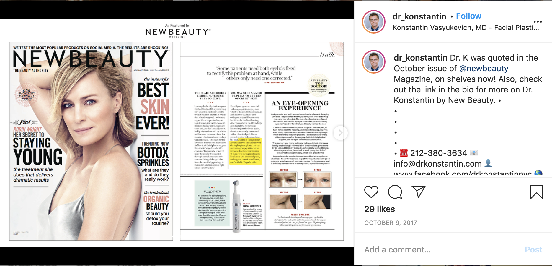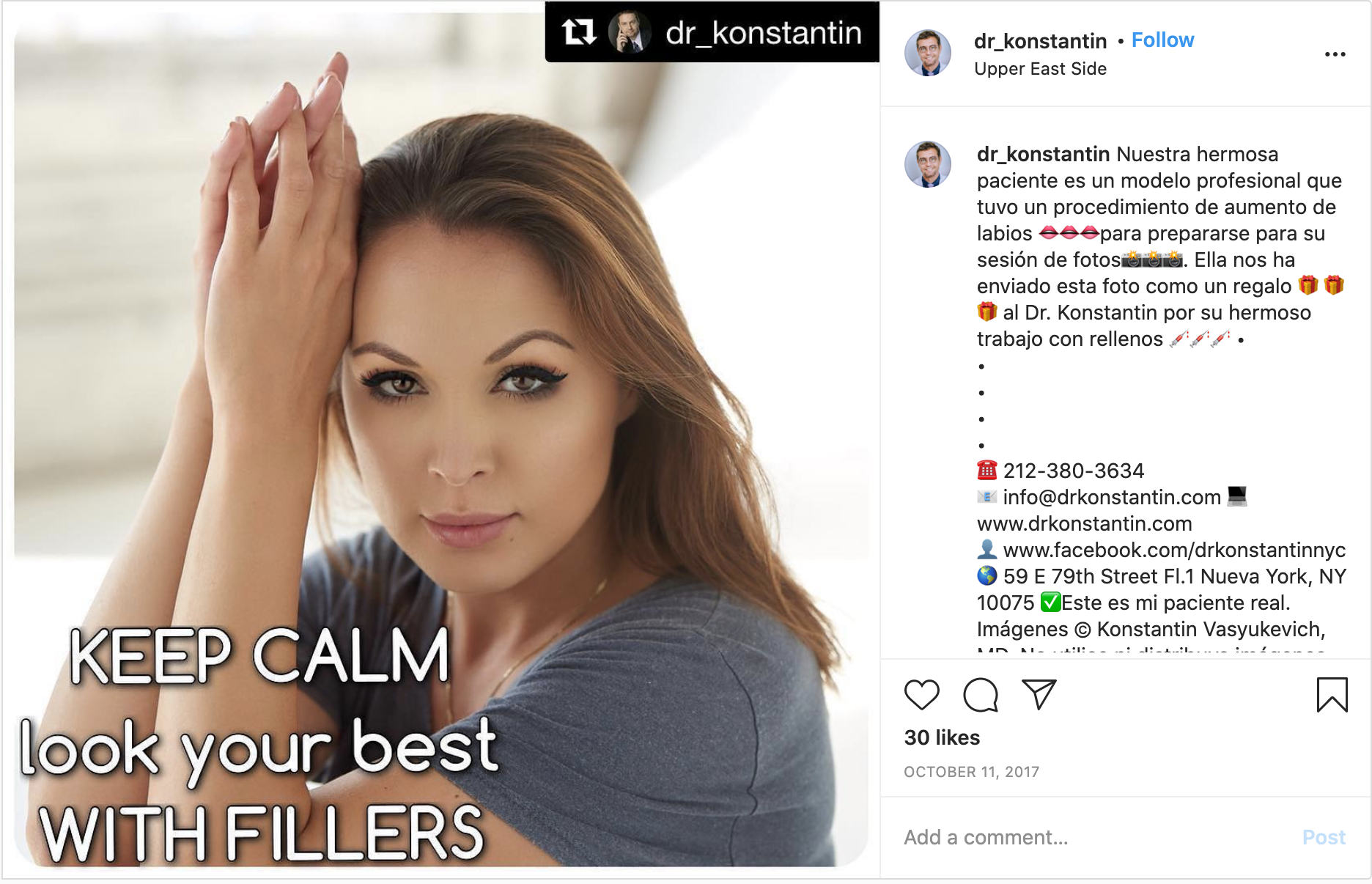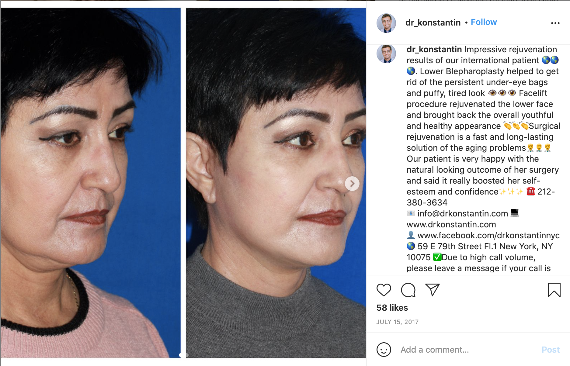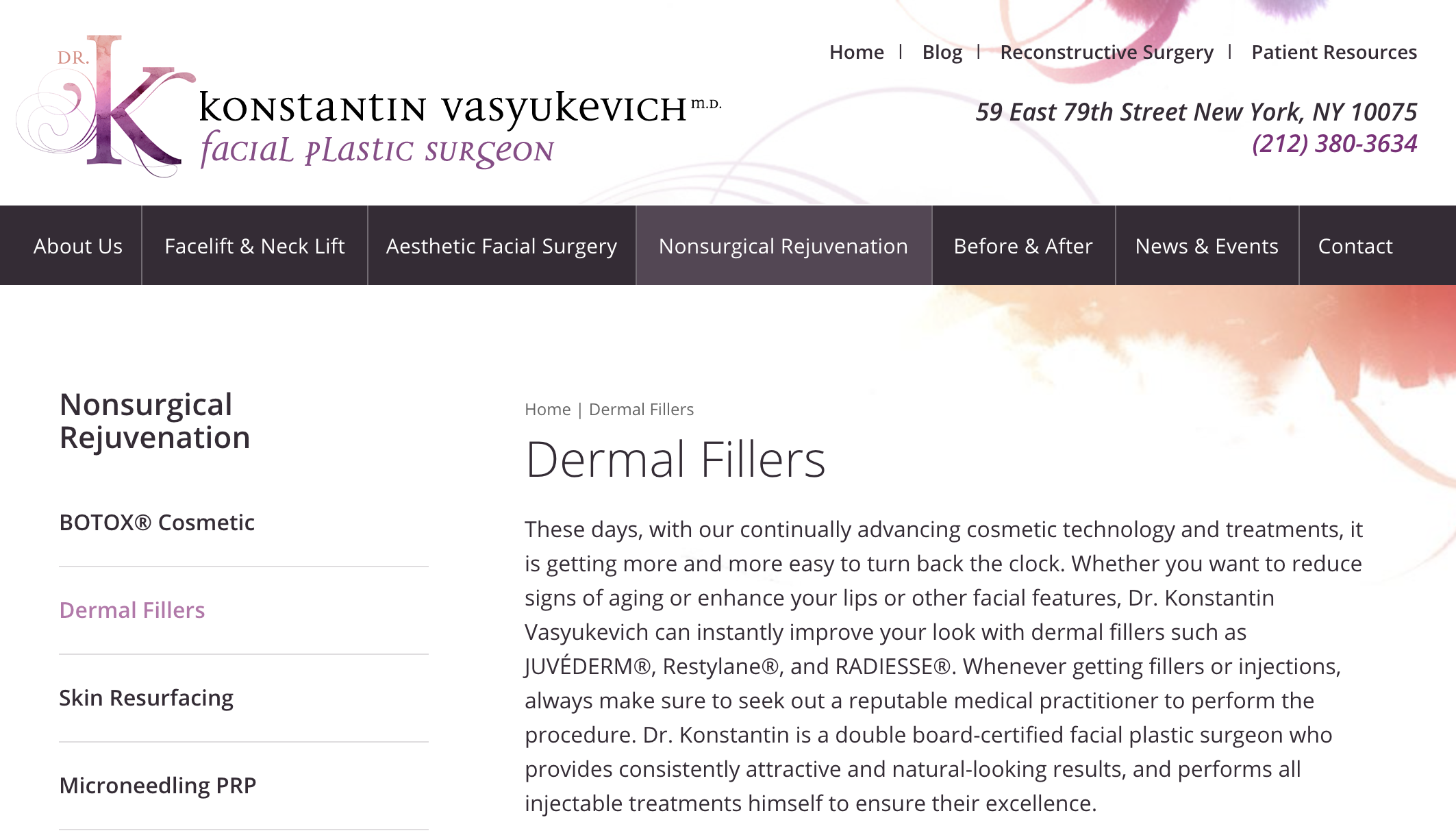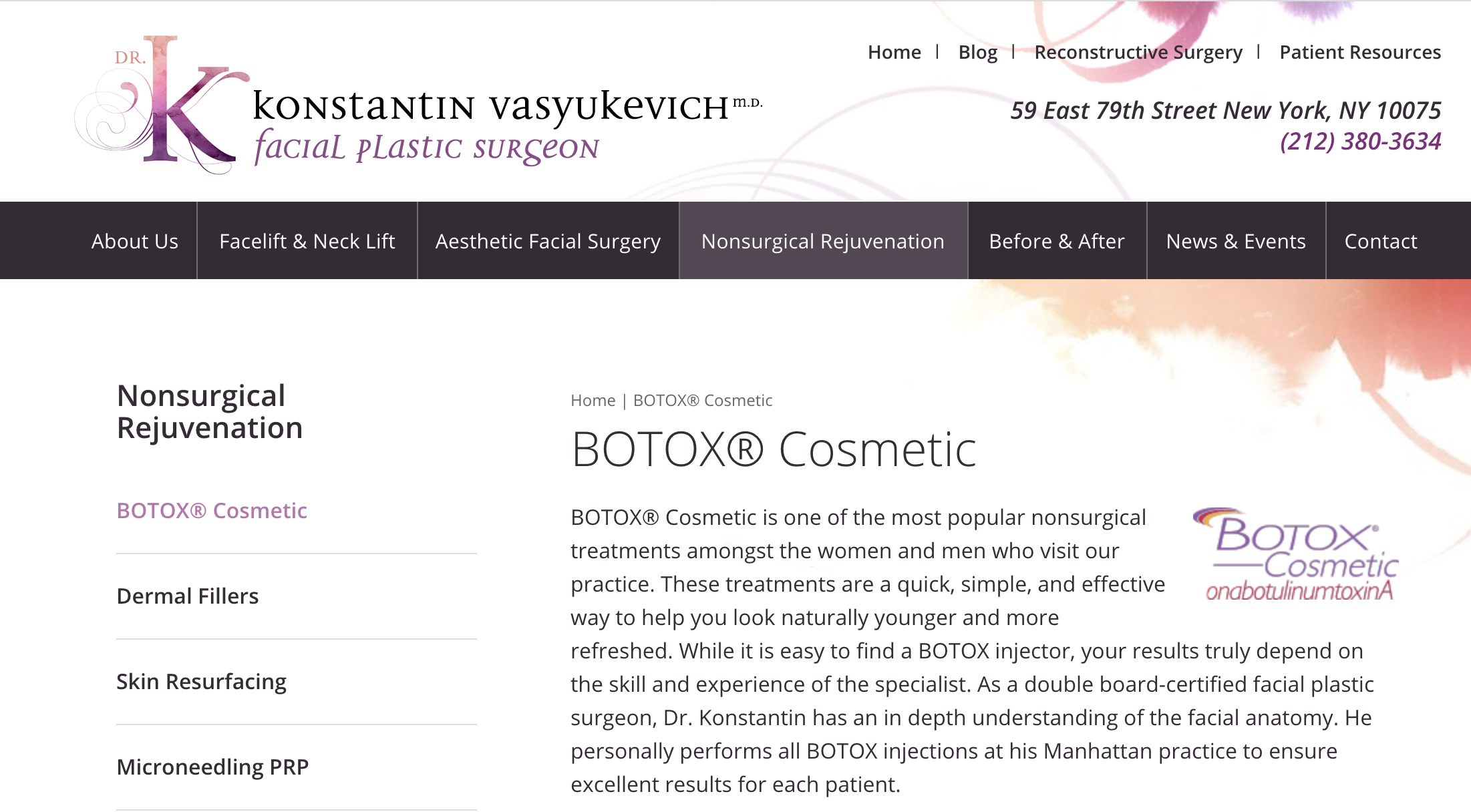 While working as a marketing intern for NY Facial Plastic Surgery, I was tasked with editing the copy on the practice’s website for coherency and clarity. I was also put in charge of creating instagram posts for the practice’s page. In these, I highlighted Dr. Vasyukevich’s accomplishments, showcased the office’s day-to-day activities, and wrote posts in Spanish to help encourage our growing multi-lingual customer base.