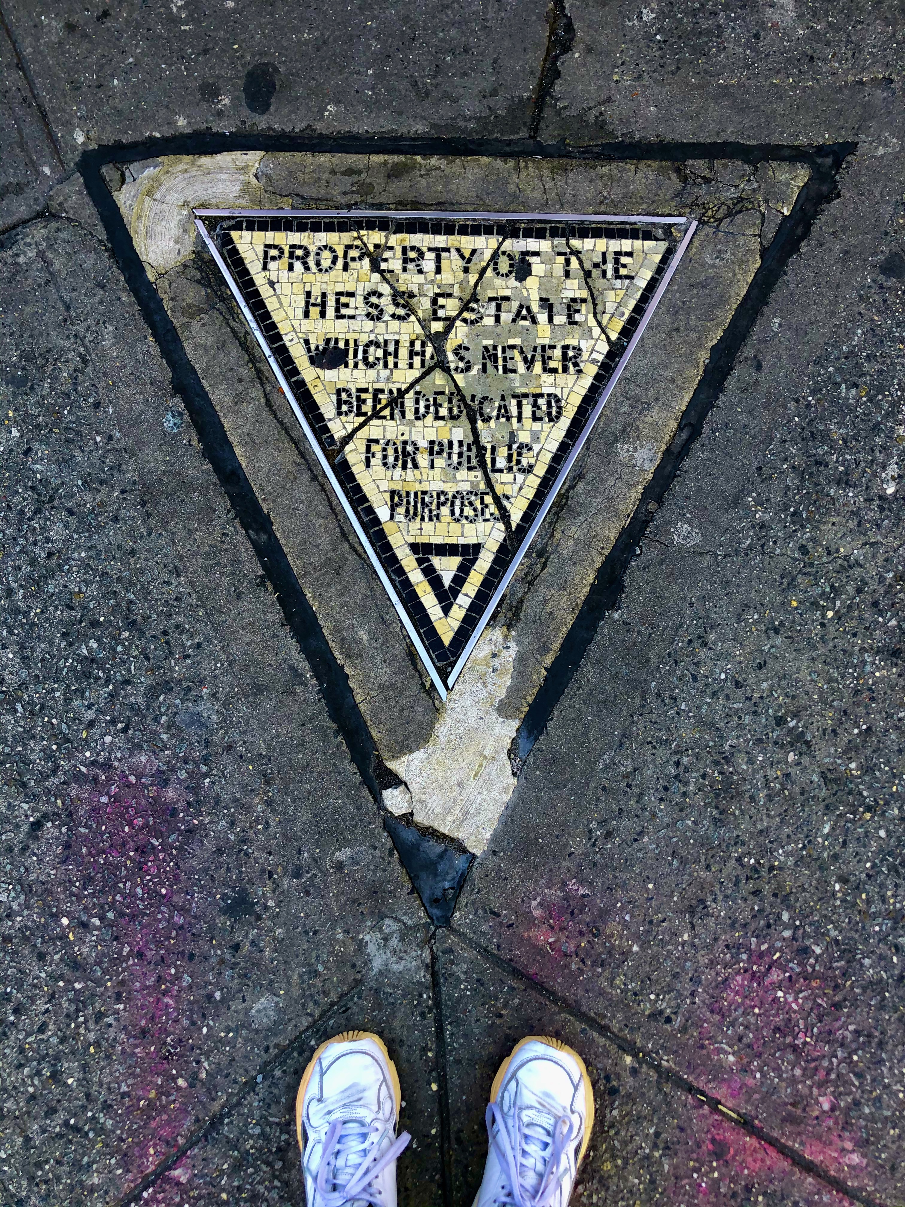 The Spite Triangle in the West Village! The last bit of private land from an estate forced to sell to the city of New York back in the 50's. With the little bit of land he had left, he placed this mosaic. I love it.